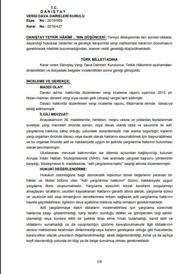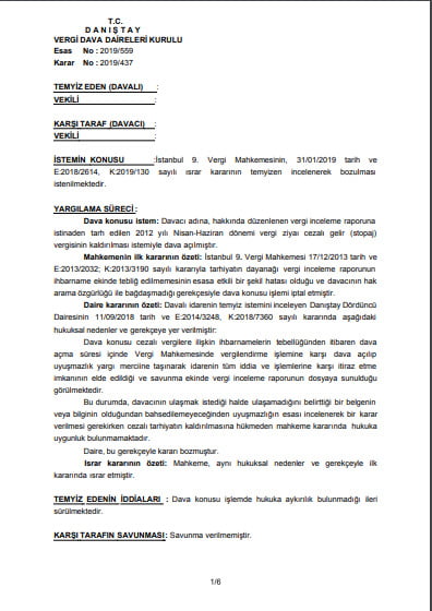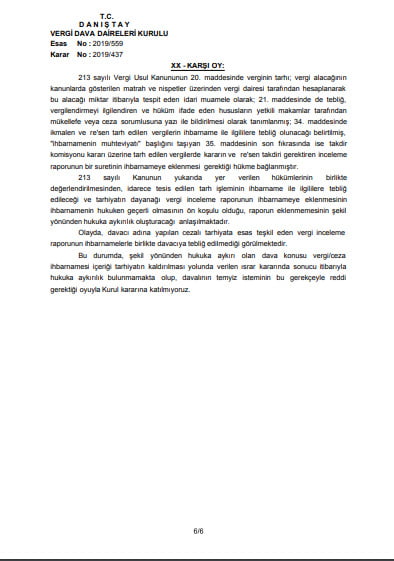 Danıştay Vergi Dava Daireleri Kurulu’nun tarhiyatın dayanağı vergi inceleme raporunun ihbarname ekinde tebliğ edilmemesinin iptal davasına etkisine ilişkin kararı